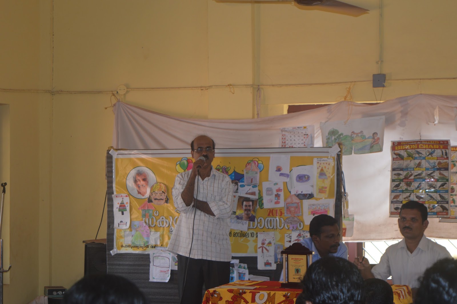 സുകു ബാലക്രിഷ്ണൻ മാഷിന് ഉപഹാരം നൽകുന്നു